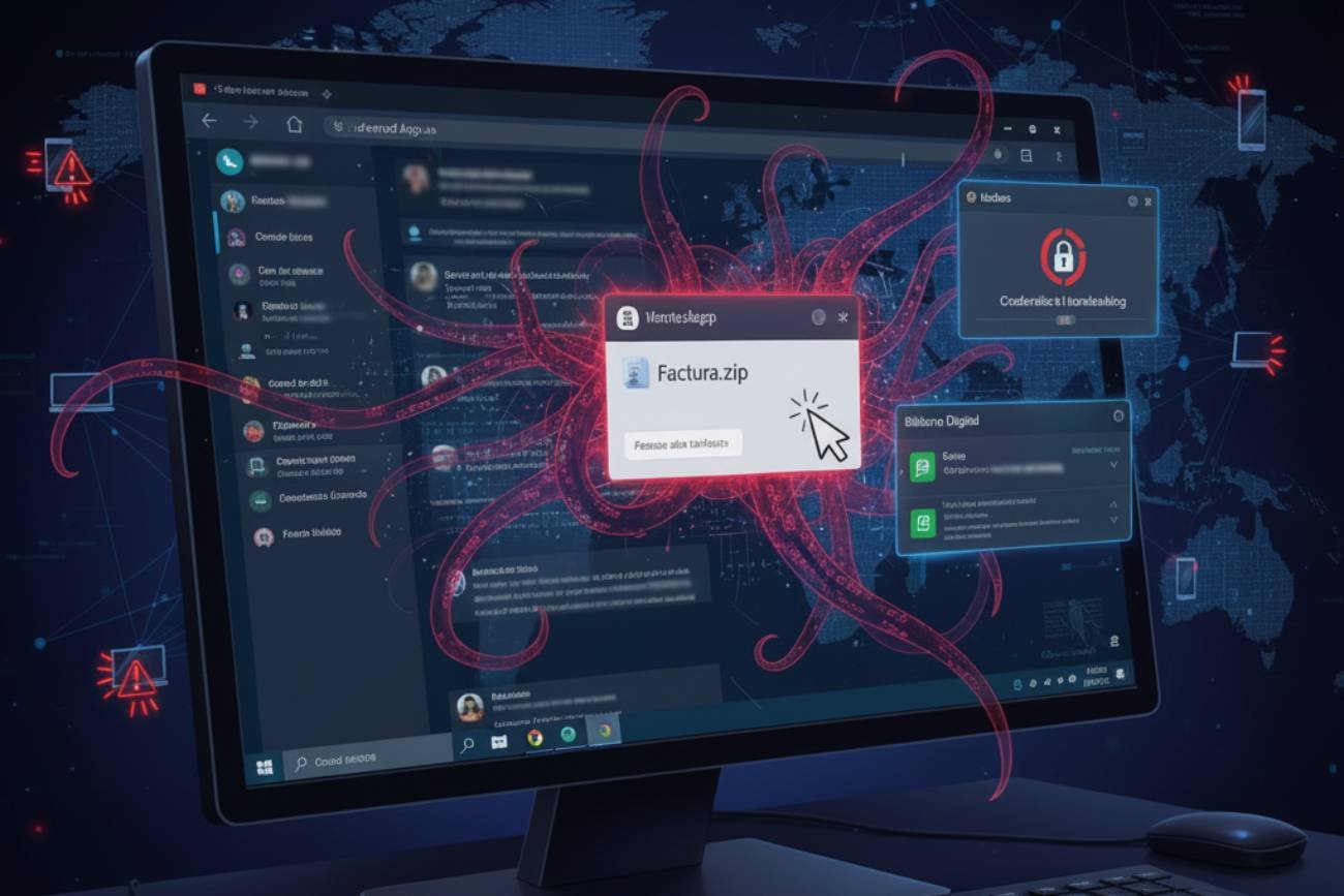 El archivo suele presentarse con nombres como “Factura.zip”, “Recibo.zip” o “Fotos de la reunión.zip”, y llega desde contactos de confianza cuyas cuentas ya fueron comprometidas.