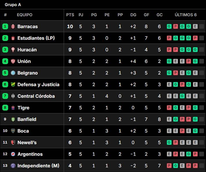 Barracas Central domina el grupo A mientras que River lo hace en el B; Boca logró su primera victoria en el certamen y escaló varios lugares Fútbol