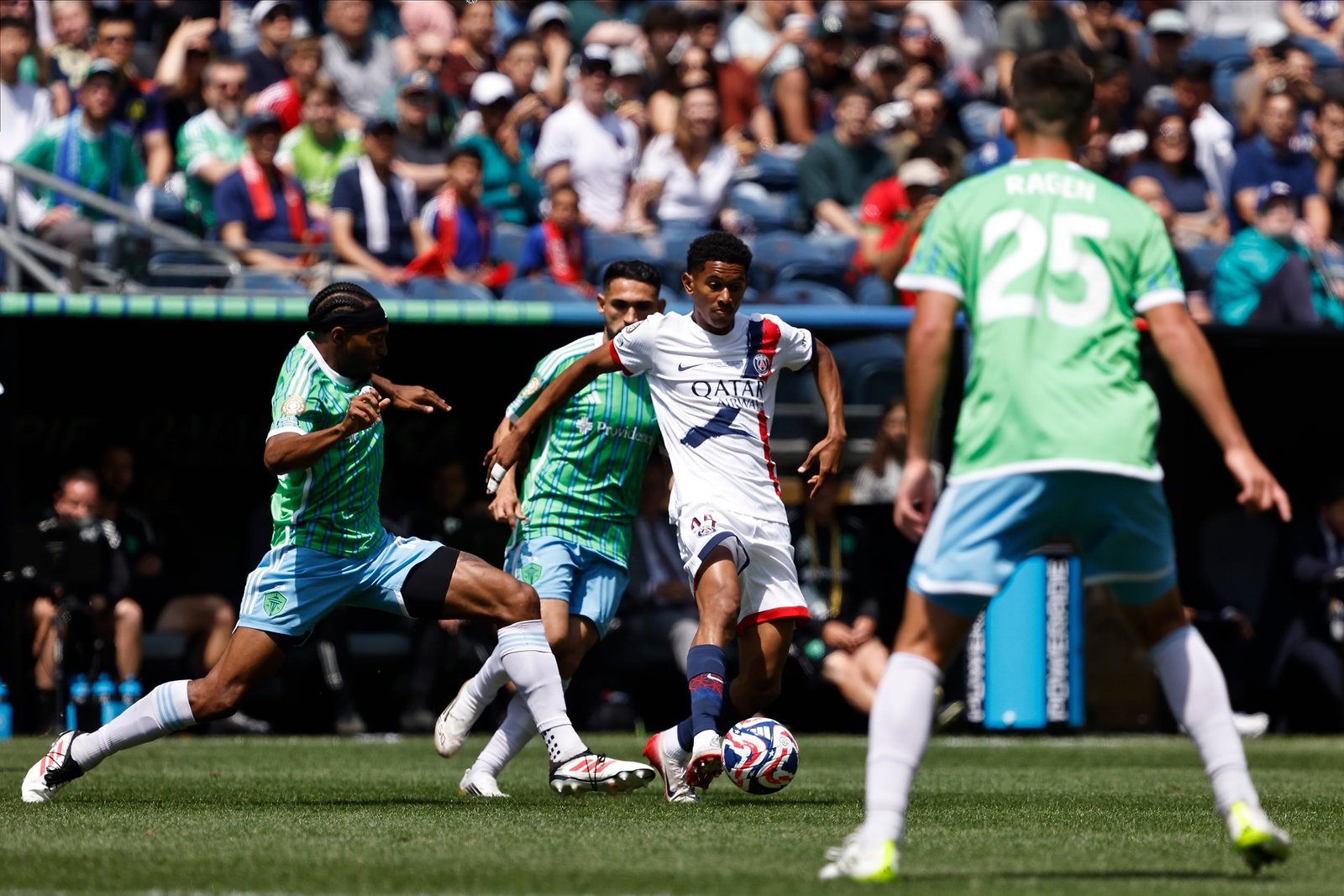 En el Lumen Field, Luis Enrique eligió a estos futbolistas para jugar frente a los estadounidenses: Gianluigi Donnarumma; Achraf Hakimi, Marquinhos, Willian Pacho y Nuno Mendes; Joao Neves, Vitinha y Fabián Ruiz; Désiré Doué, Senny Mayulu y Khvicha Kvaratskhelia. Sounders, que jugará con su público formará de la siguiente manera: Seattle: Stefan Frei; Cristian Roldán, Jackson Ragen, Jonathan Bell y Nouhou Tolo; Cristian Roldán y Obed Vargas; Paul Rothrock, Albert Rusnak y Paul Rothrock; Jesús Ferreira.