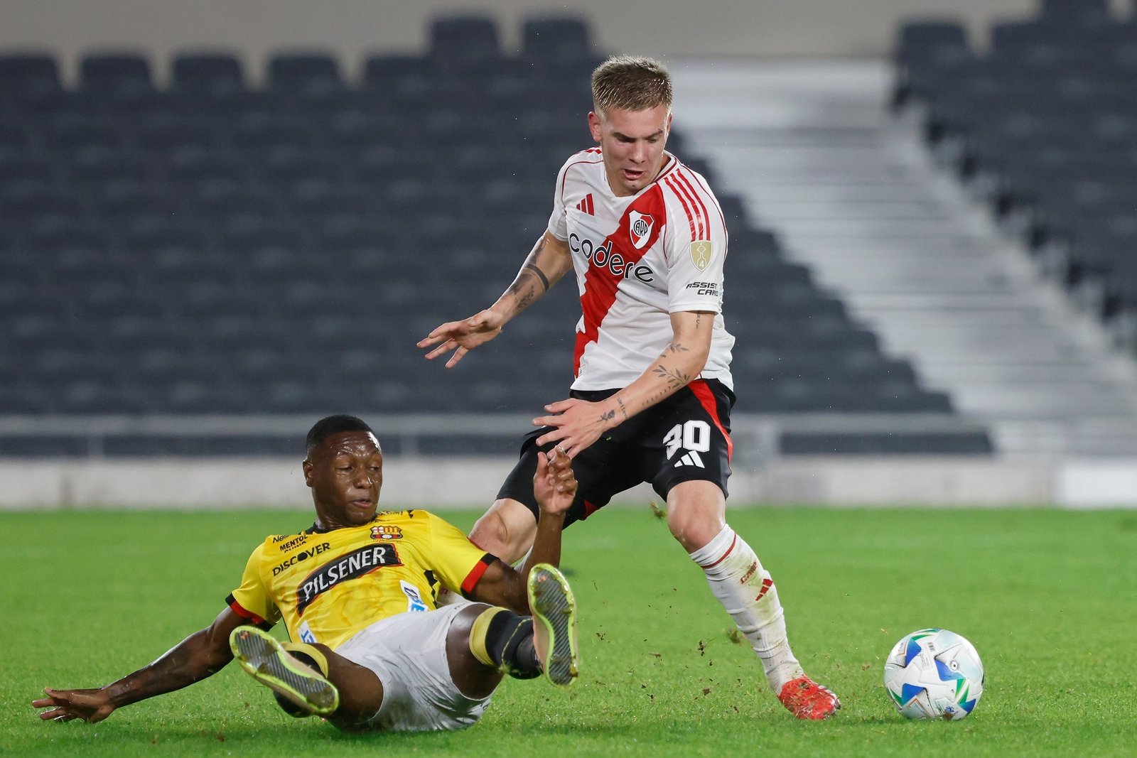 River visita a Barcelona de Ecuador este jueves, por la fecha 4 del Grupo B de la Copa Libertadores 2025. Ambos equipos buscan el triunfo para mantenerse en los puestos de arriba de la tabla de posiciones. El partido comienza a las 21.30 (hora argentina) en el estadio Monumental Isidro Romero Carbo y cuenta con el arbitraje del colombiano Wilmar Roldán. Se puede ver en vivo por TV a través de Fox Sports y Telefé, como así también por streaming en Disney+. El minuto a minuto, en tanto, se puede seguir en canchallena.com.