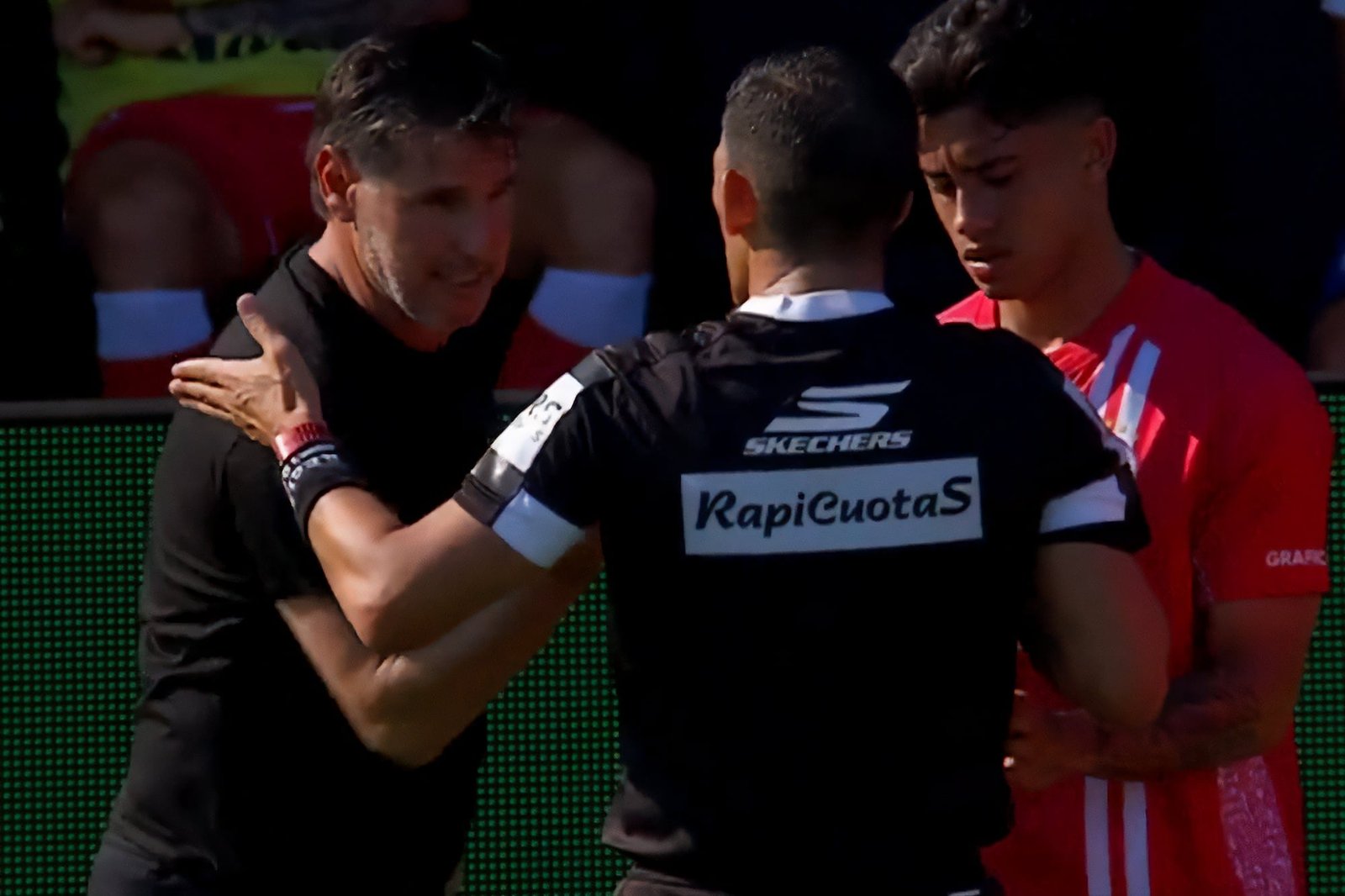 Instantes después, Merlos le mostró la tarjeta roja a Diez, que se retiró visiblemente alterado. Ya camino al vestuario, el entrenador se dirigió de manera desafiante hacia el primer asistente, Pablo González, mientras hacía un gesto circular con la mano, en alusión al desarrollo del encuentro. Fue contenido por su ayudante José Luis Calderón, quien evitó un cruce mayor.