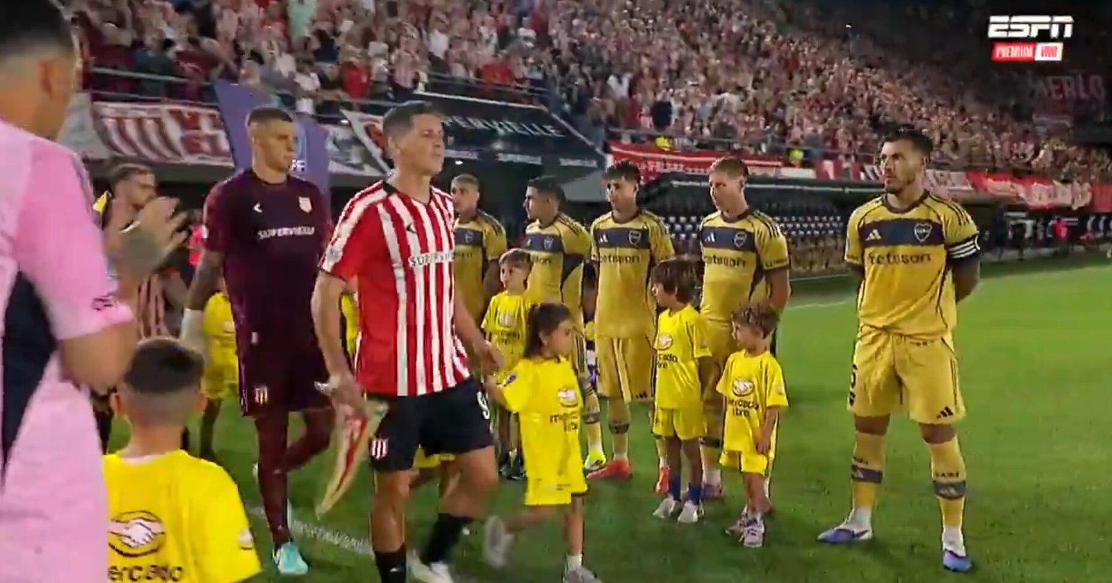 Estudiantes, campeón del Torneo Clausura 2025, jugó su primer partido de la temporada de local y recibió el “respeto” de su rival por ese título. Boca recibió al Pincha con ese pasillo.