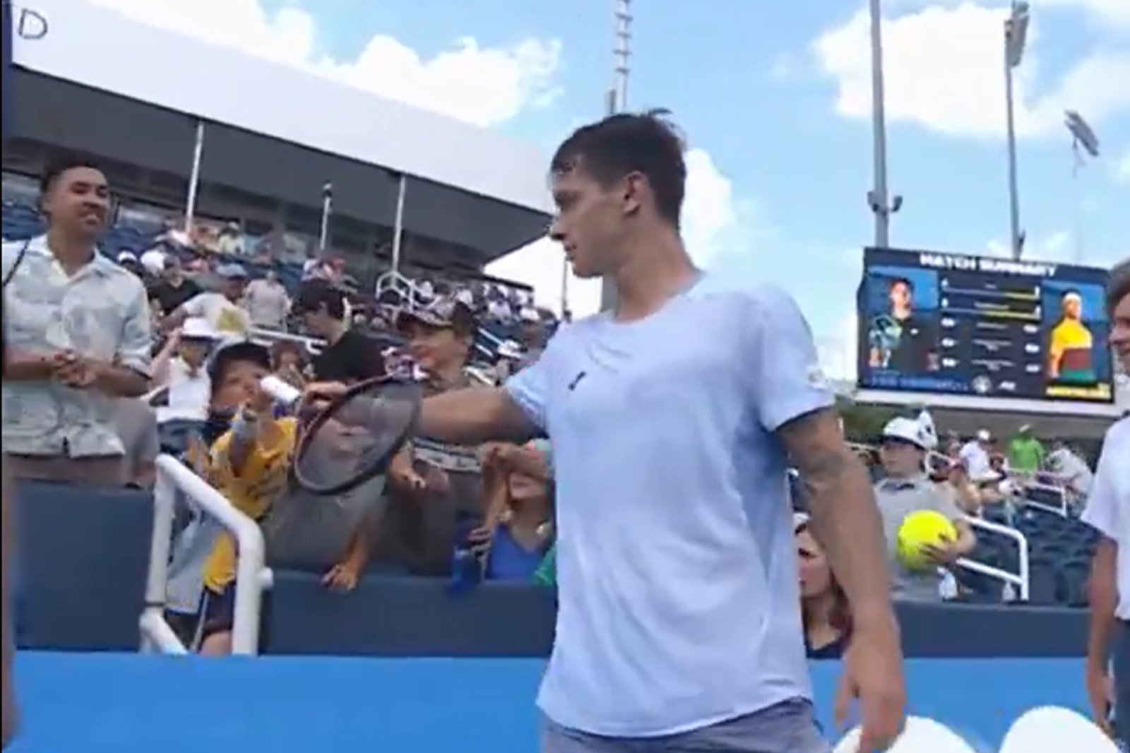 Ugo Carabelli ganó y le regaló la raqueta a un niño