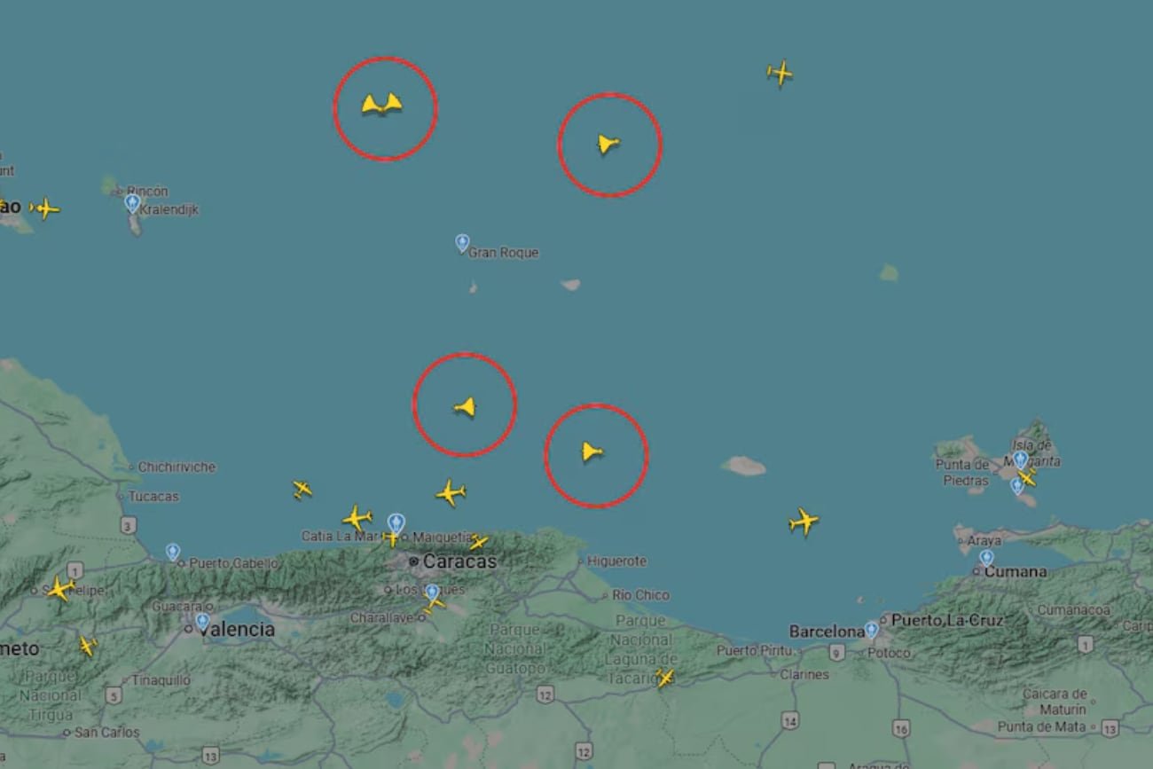 Al menos cinco aviones de combate de Estados Unidos están operando frente a las costas de Venezuela, situándose a kilómetros de Caracas en el marco de la creciente tensión en el mar Caribe. Este despliegue, detectado y reportado este jueves, fue registrado por el sistema de seguimiento de aeronaves Flight Radar.