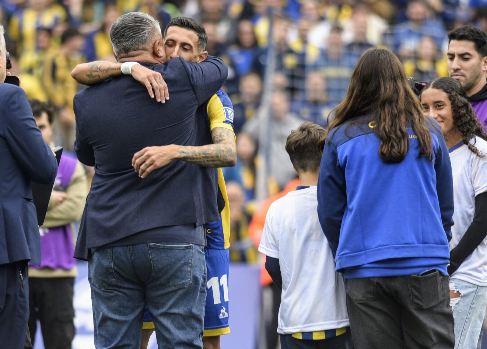 Con esa frase, y visiblemente emocionado, el presidente de AFA Claudio “Chiqui” Tapia habló ante los micrófonos luego de abrazar en la mitad de cancha a Ángel Di María, en lo que fue su regreso a Rosario Central.