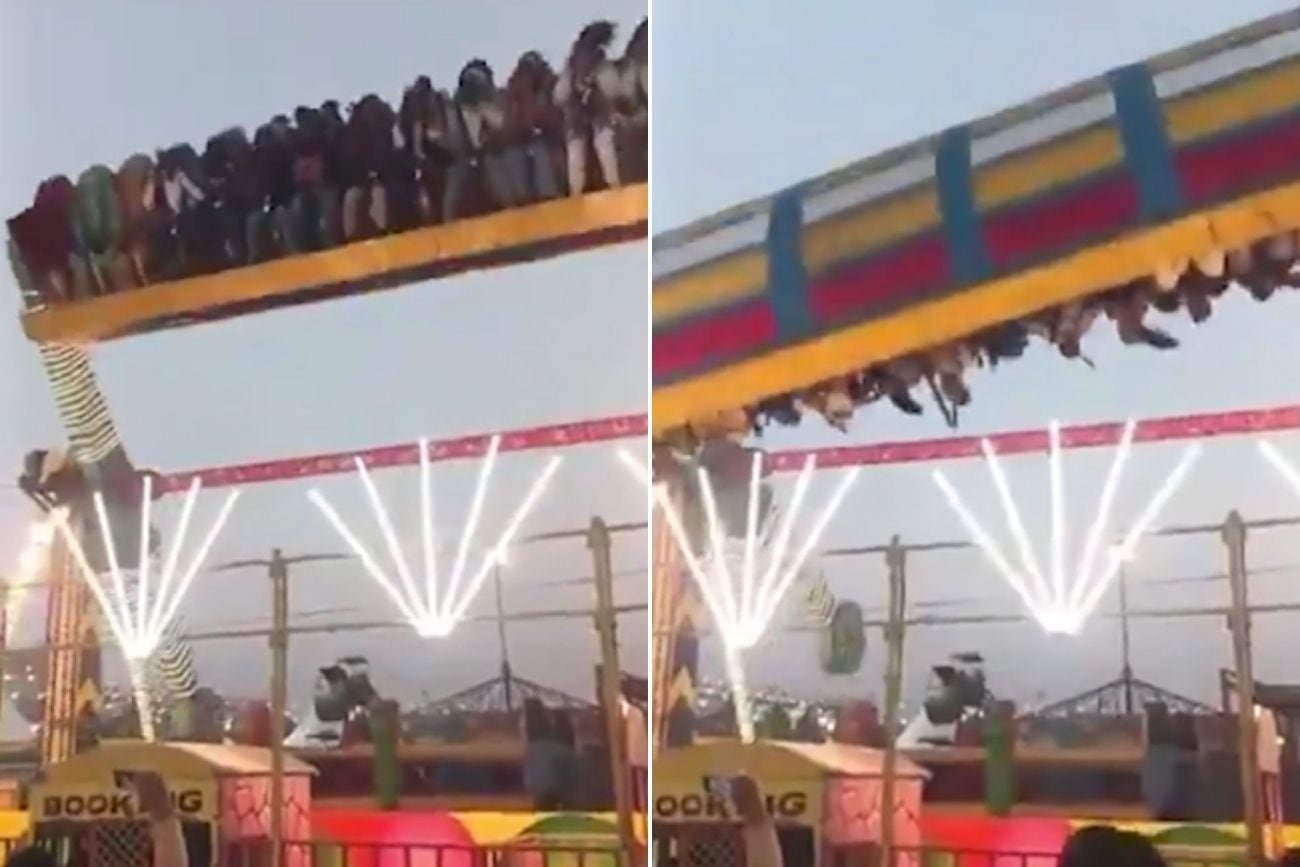 El incidente se produjo cuando la atracción tipo “martillo”, identificada como “Tsunami”, comenzó a presentar fallas. Testigos relataron al medio Bhaskar English que el juego se atascó en lo alto, se balanceó de manera inestable y luego se precipitó al suelo.