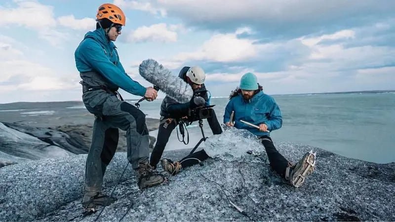 Grabar esos sonidos es un reto. Vlasis va hasta los glaciares aproximadamente una vez al mes para ampliar su biblioteca de sonidos, utilizando diferentes tipos de micrófonos como micrófonos de cañón y omnidireccionales. Algunos los deja allí durante meses.