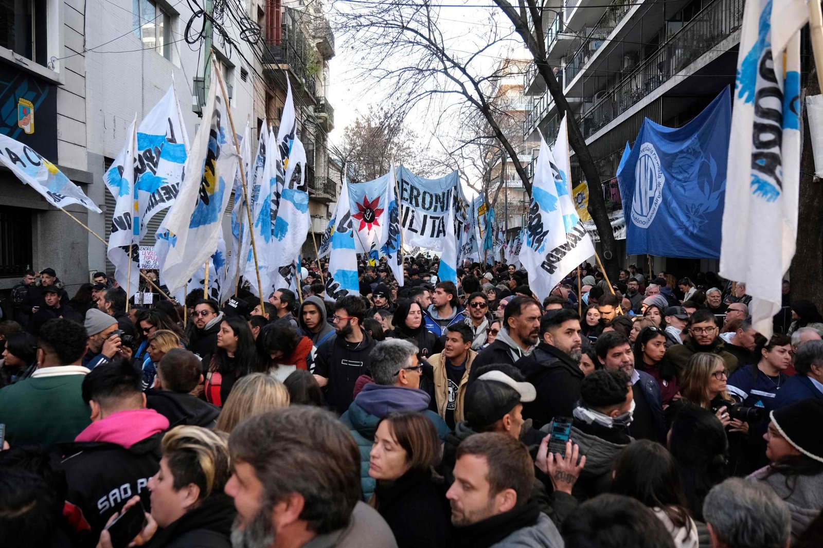 Los manifestantes que se congregaron para respaldar a la expresidenta ocupan la cuadra de Matheu, entre Hipólito Yrigoyen y Adolfo Alsina. A diferencia de la jornada de ayer, cuando la propia militancia cortó esas calles por su propio volumen de convocatoria, este martes se desplegaron agentes de tránsito del gobierno porteño que impiden la circulación por Matheu desde la avenida Rivadavia, a dos cuadras de la sede partidaria.