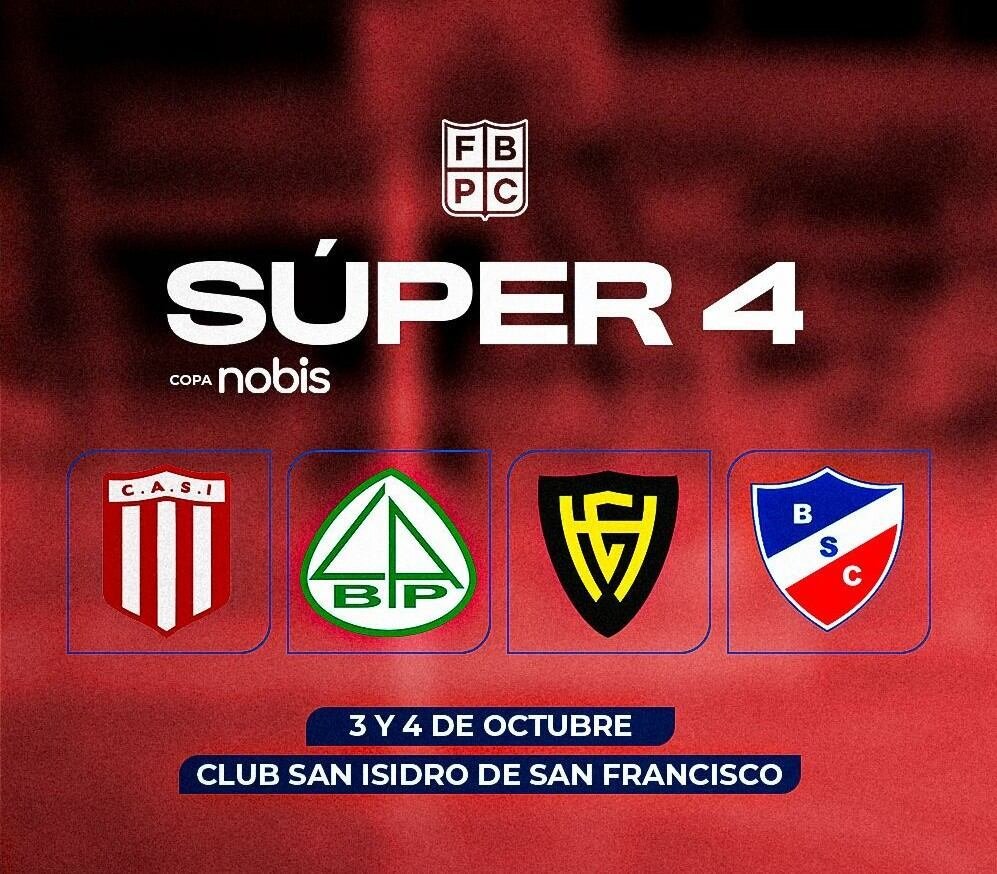 El 3 y 4 de octubre se disputará en el estadio Antonio Manno de San Francisco el Súper 4 cordobés de la Liga Argentina de Básquetbol, preparatorio para la temporada 2025/2026 que comenzará el 2 de noviembre.Los cuatro representantes de Córdoba, Barrio Parque, Hindú Club, Bochas de Colonia Caroya y el local San Isidro, disputarán el certamen organizado por la Federación de Básquet de la Provincia (FBPC), más el apoyo de de Nobis Medical y de la Municipalidad de San Francisco.La primera jornada del Súper 4 se jugará el sábado 3 de octubre. A primera hora, las 20, Barrio Parque se medirá con Hindú. En el segundo turno, a las 22, el anfitrión San Isidro enfrentará a Bochas Sports.El domingo 4 de octubre será la definición. A las 19 jugarán los perdedores de la primera jornada por el tercer puesto, mientras que la final por el título se disputará a las 21.Para Barrio Parque será su participación número 13 de manera consecutiva en la Liga Argentina, y cuenta con Cristian Colli como entrenador. San Isidro es el otro club histórico de la competencia que disputó la final por el ascenso en la campaña pasada, con Sebastián Porta como técnico. Hindú y Bochas debutarán en la Liga Argentina. El “H” cuenta con Mauro Salinas en el banco, y al elenco de Colonia Caroya lo conduce Jeremías Musina.