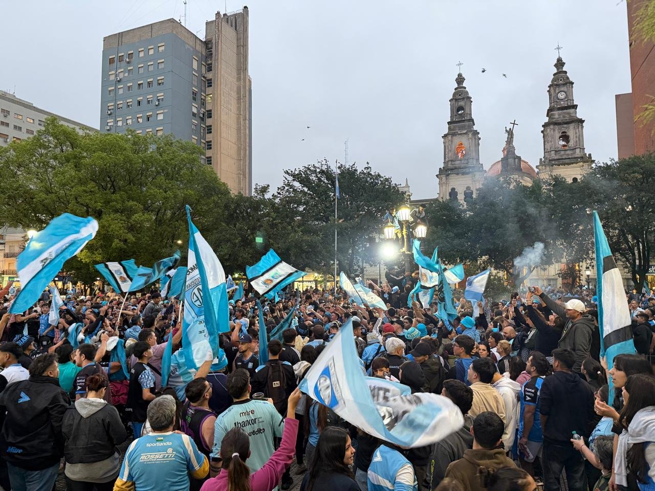 Varios puntos emblemáticos de Río Cuarto se convirtieron en epicentro del festejo: plazas, avenidas y esquinas colmadas de camisetas celestes celebraron un logro que quedará para siempre en la memoria del club y su gente.