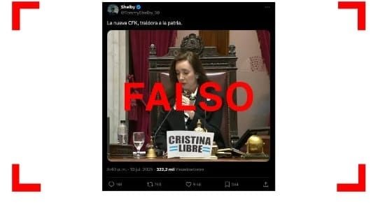 A raíz de esto, comenzó a circular en redes sociales una foto de Villarruel en el estrado del recinto con un supuesto cartel que dice: “Cristina libre”. Los posteos, que acumulan más de 10.000 “Me gusta”, señalan: “La nueva CFK, traidora a la patria”.