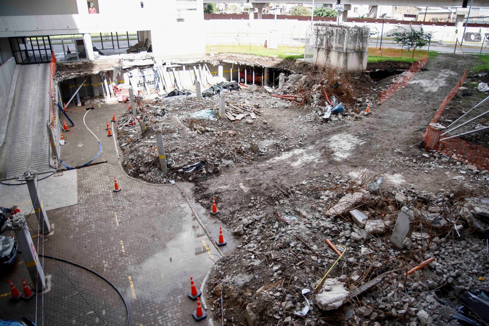La arquitectura original del complejo Estación Buenos Aires, en Parque Patricios, desarrollado en el marco del Plan Procrear, planteaba un diseño de niveles superpuestos que terminó en desastre: el 3 de marzo pasado, una losa de proporciones masivas que servía de techo al estacionamiento de la planta baja y, simultáneamente, de suelo para un parque elevado en el primer piso, donde los niños solían jugar, colapsó por completo hundiéndose sobre las cocheras.