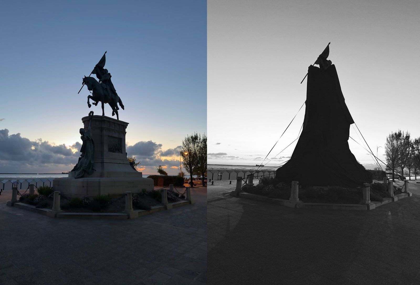 “¿Por qué hay un velo negro sobre la estatua ecuestre del Boulevard Sainte-Beuve en Boulogne Sur Mer?”. Tal la incógnita que recogía ayer la edición digital de La Voix Du Nord (La voz del norte) frente a la primera parada de la gira de La estrategia del eclipse, la acción performática de la cordobesa Dolores de Argentina (Dolores Cáceres) estrenada en octubre de 2023 en Plaza San Martín con la envoltura en tela negra y cinta del primer monumento ecuestre emplazado en Argentina en 1862: el Libertador a caballo según lo modeló el francés Louis-Joseph Daumas.