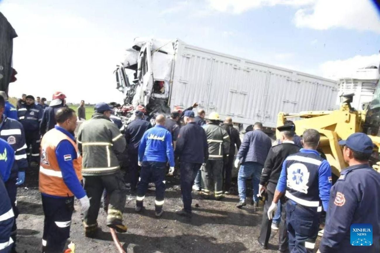 Imágenes difundidas por la gobernación de Dakahlia mostraron la camioneta aplastada entre dos camiones de carga y restos esparcidos sobre la carretera.