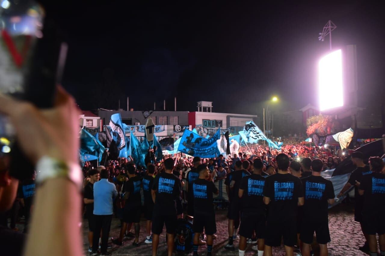 Las puertas del hotel Quinto Centenario, allí donde concentra el plantel de Belgrano, se transformó en una de las cabeceras del Gigante de Alberdi con una multitud de hinchas que fueron a darle su apoyo al plantel que espera el clásico de este domingo a las 16.45 ante Talleres en el estadio Mario Kempes.