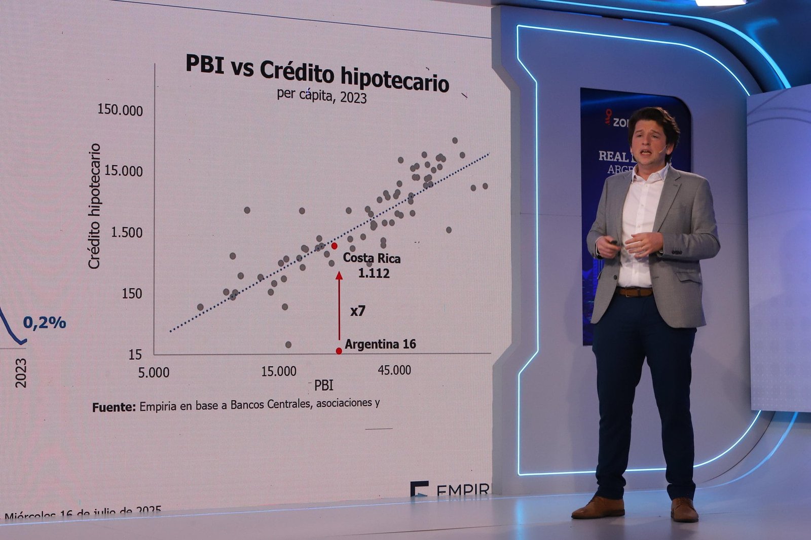 La comparación histórica fue reveladora. “Para tener perspectiva: el crédito arranca desde casi cero. El período 2020-2023 fue el peor de la historia argentina en términos de nuevos créditos y de volumen de mercado. Hoy, el crédito hipotecario representa apenas el 0,2% del PBI. Somos uno de los países del mundo con menos crédito hipotecario”, detalló. Y aportó datos regionales: “Paraguay tiene el equivalente a 130.000 créditos más que nosotros, y Chile, 1.800.000. Por lo que, salvo Venezuela, somos el peor parado de América Latina”.