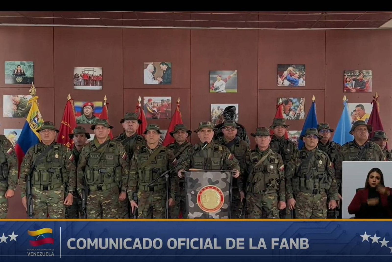 A horas de la ofensiva de Estados Unidos en Caracas, que culminó con la detención de Nicolás Maduro y Cilia Flores, su esposa, la Fuerza Armada Nacional Bolivariana (FANB) exigió su liberación inmediata y respaldó a Delcy Rodríguez como presidenta encargada de Venezuela.