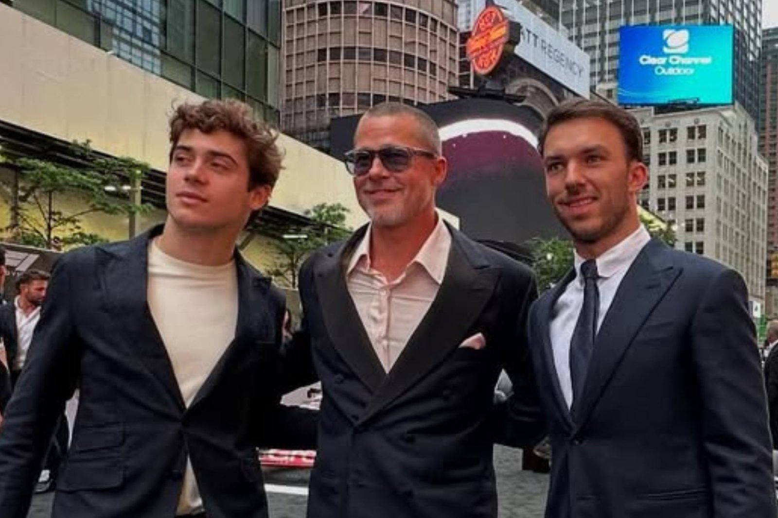 En un video que se viralizó en las redes sociales se pudo ver el momento en el que Gasly conversaba con Pitt. Colapinto apareció por detrás de su compañero para estrecharle la mano al actor. Intercambiaron unas breves palabras y luego se movió para que el francés retomarla la charla. Posteriormente, los tres se ubicaron junto al auto de Alpine que estaba exhibido y posaron juntos para una foto con las luminosas marquesinas de fondo.