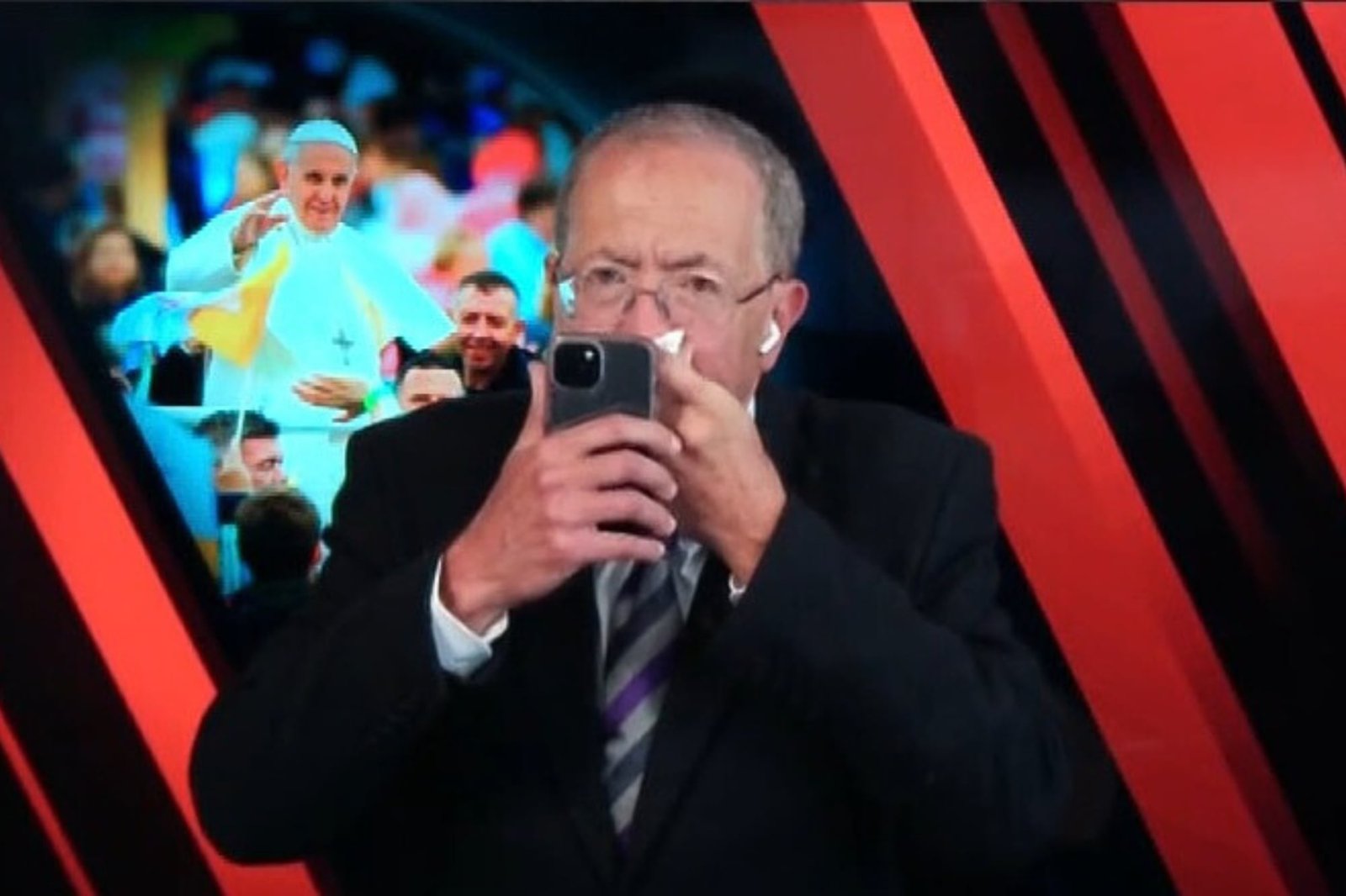 El corresponsal de la edición en español de la señal de noticias no pudo contener las lágrimas y se mostró afligido tras el fallecimiento del líder de la Iglesia Católica El Mundo