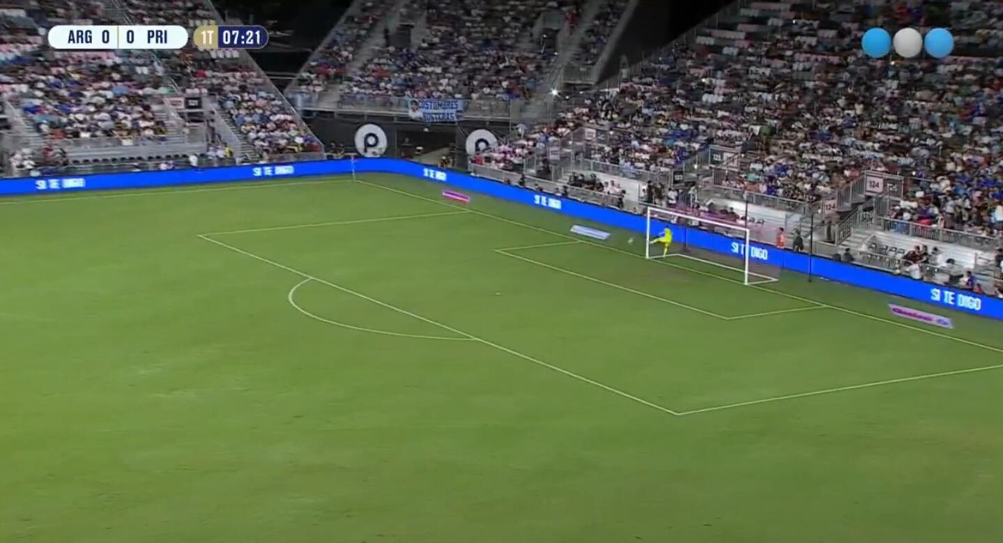 En el cierre de su gira amistosa por Estados Unidos, este martes la selección argentina se enfrenta ante su par de Puerto Rico. En el estadio Chase Center, donde es local Inter Miami en la MLS, ambos combinados se hicieron cita para disputar el último encuentro de preparación de esta ventana Fifa.En la primera etapa, y todavía con el marcador 0-0, el arquero argentino Emiliano “Dibu” Martínez tuvo una magnífica atajada para evitar el primer tanto del encuentro.A los 7′, Giovanni Calderón aprovechó que el arquero estaba adelantado y sacó un impresionante tiro desde su propio campo. “Dibu” pudo volver sobre sus pasos y evitó la conquista.La formación de la selección argentina vs. Puerto Rico, por el amistoso internacionalEl 11 de Argentina: Emiliano Martínez; Gonzalo Montiel, Leonardo Balerdi, Nicolás Otamendi, Nicolás González; Giuliano Simeone, Rodrigo De Paul, Alexis Mac Allister, Giovani Lo Celso; José López y Lionel Messi. DT: Lionel Scaloni. La formación de Puerto Rico ante Argentina, por el amistoso intrernacionalEl 11 de Puerto Rico: Sebastian Cutler; Nicolás Cardona, Giovanni Calderón, Sidney Paris y Roberto Ydrach; Steven Echevarria, Isaac Angking y Wilfredo Rivera; eandro Antonetti, Ricardo Rivera y Jeremy De León. DT: Charlie Trout.