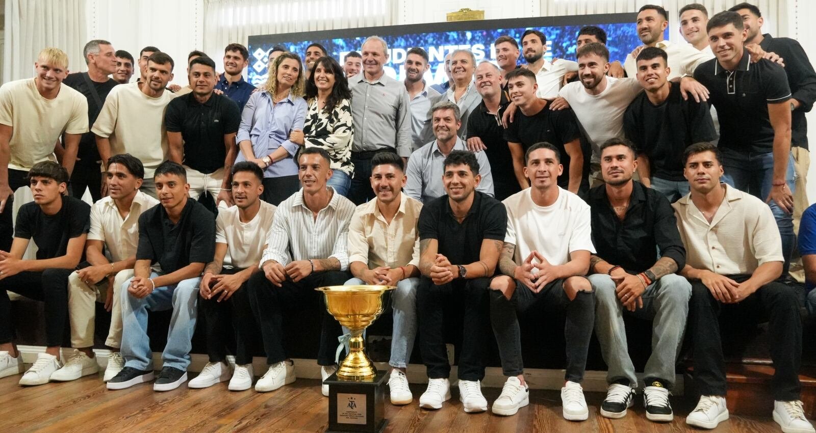 Homenaje al plantel de Estudiantes por el ascenso (Prensa Gobierno)