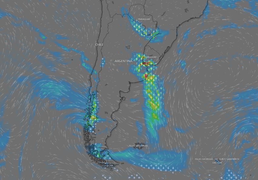 Además, se mantiene el alerta por nevadas en el oeste de Chubut, Río Negro, Neuquén y Mendoza. Se esperan acumulaciones de nieve de entre 40 y 70 centímetros, con posibilidad de superar esos valores de forma puntual.