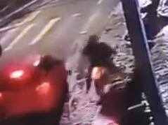 Como consecuencia del impacto, el vehículo se desvió hacia su derecha y terminó colisionando contra el cordón de la vereda. El joven motociclista salió despedido, pero logró sujetarse brevemente del techo del auto antes de caer sobre una esquina con césped, lo que amortiguó su caída.
