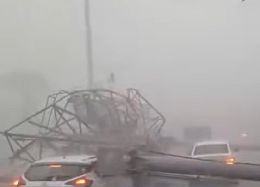 El coche rebotó al recibir un impacto en medio de intensas lluvias y fuertes vientos; la parte delantera quedó destrozada; investigan las causas por las que se desplomó la estructura El Mundo