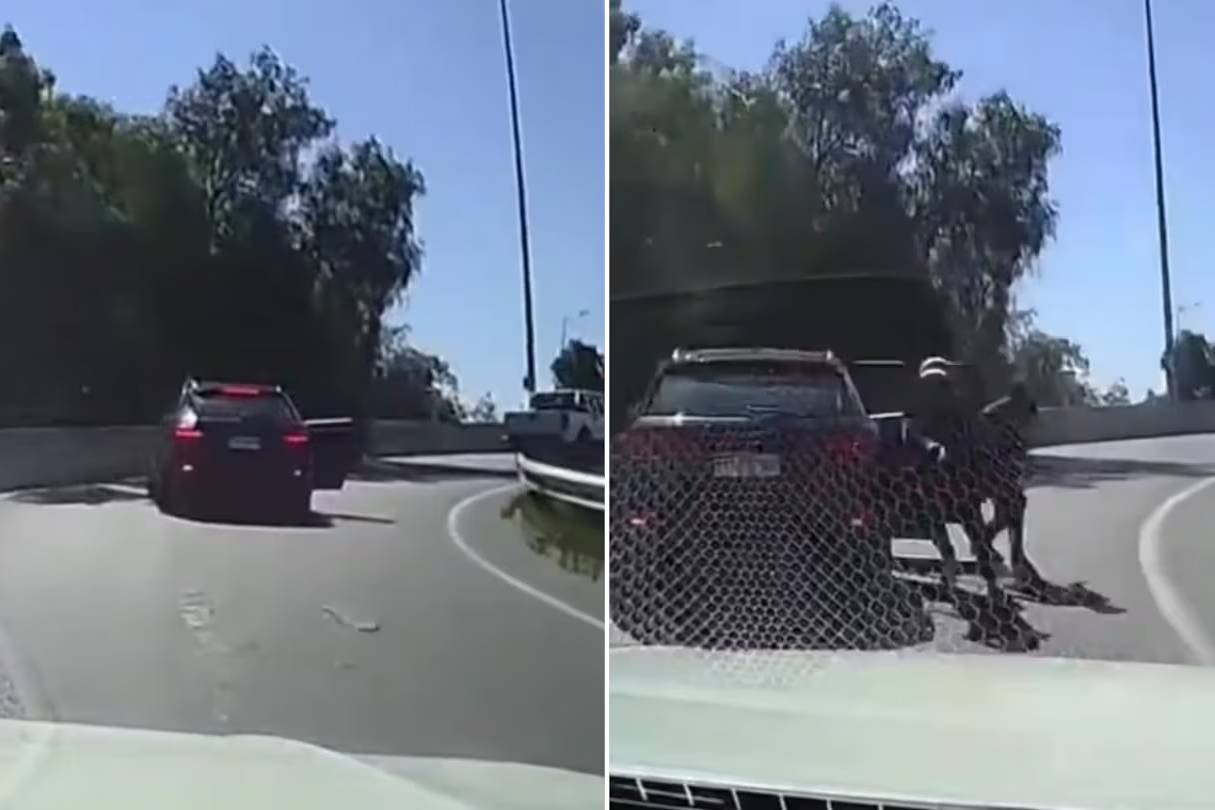 Tras el choque, el conductor logró sortear el bloqueo y escapar por la autopista mientras continuaba la grabación, en la que se escucha el diálogo nervioso con su copiloto tras haber dejado atrás el peligro.