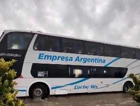 El micro de Empresa Argentina había salido de la ciudad santafesina de Rosario y se dirigía a Mar del Plata. Sin embargo, alrededor de la medianoche de este sábado, la altura del agua llegó a tal nivel que la unidad se estancó y no pudo avanzar en el tramo que une Baradero con Zárate, las localidades más afectadas por el temporal. Allí cayeron más de 400 milímetros en 30 horas.