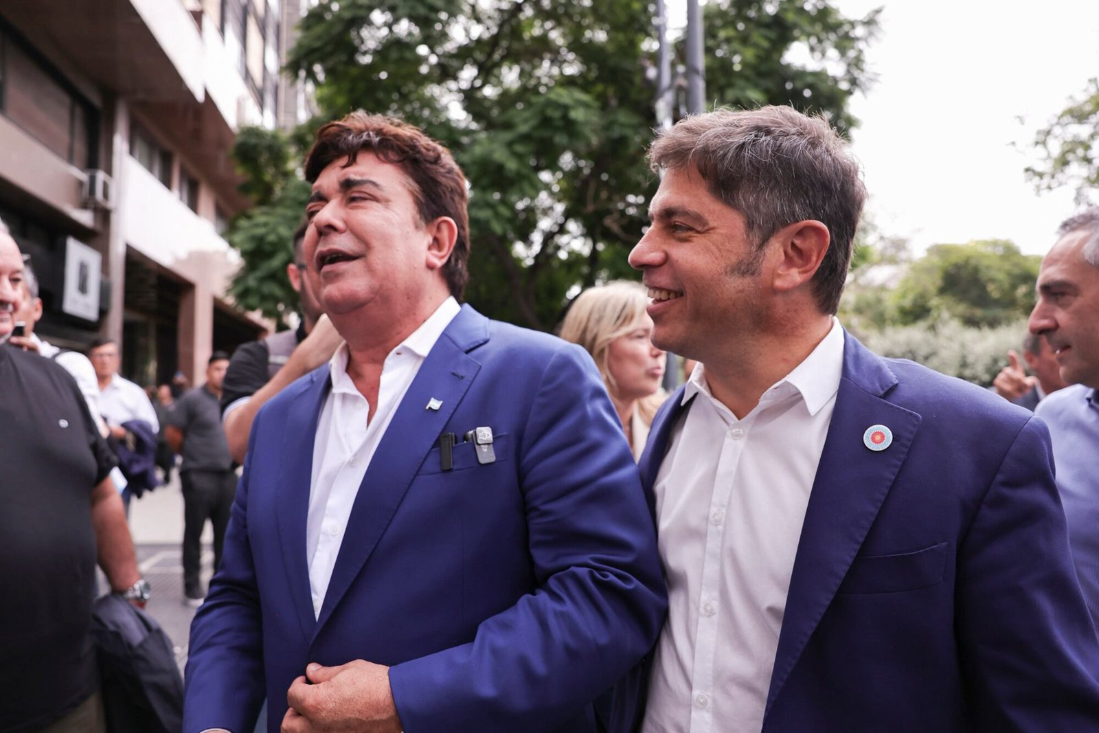 El gobernador de la provincia de Buenos Aires, Axel Kicillof, parte de su gabinete, e intendentes nucleados en la Federación Argentina de Municipios (FAM), se concentraron este martes al mediodía frente al Ministerio de Economía, para reclamarle al titular de esa cartera, Luis Caputo, un mayor caudal de fondos de coparticipación, el restablecimiento de transferencias nacionales, compensaciones para el transporte público por el precio del gasoil y la entrega de alimentos, entre otros puntos.