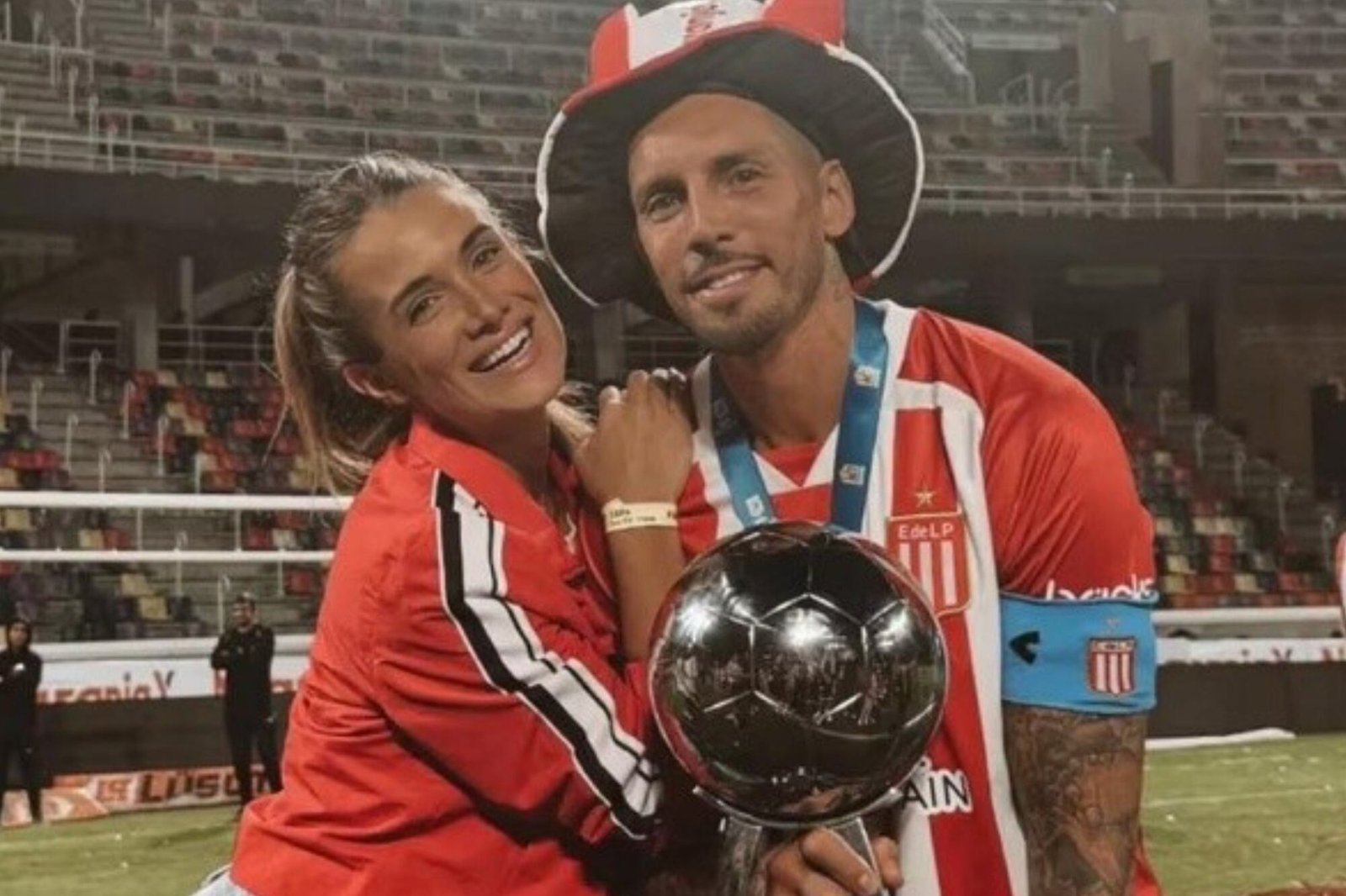 La modelo no viajó al estadio Madre de Ciudades al estar embarazada de ocho meses de Aitana, la hija que tendrán con el futbolista. Sin embargo, desde su casa, sintonizó la transmisión oficial y se convirtió en una hincha más de Estudiantes que, finalmente, se consagró desde los doce pasos.