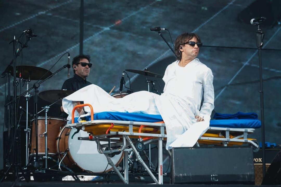 Ninguna de las dos opciones. Esta fue la épica e impactante forma en la que Joaquín Levinton decidió subir al escenario para dar inicio a su presentación con Turf. El artista entró en camilla, escoltado por dos enfermeras y tapado con una sábana blanca como si de un cadáver se tratara.