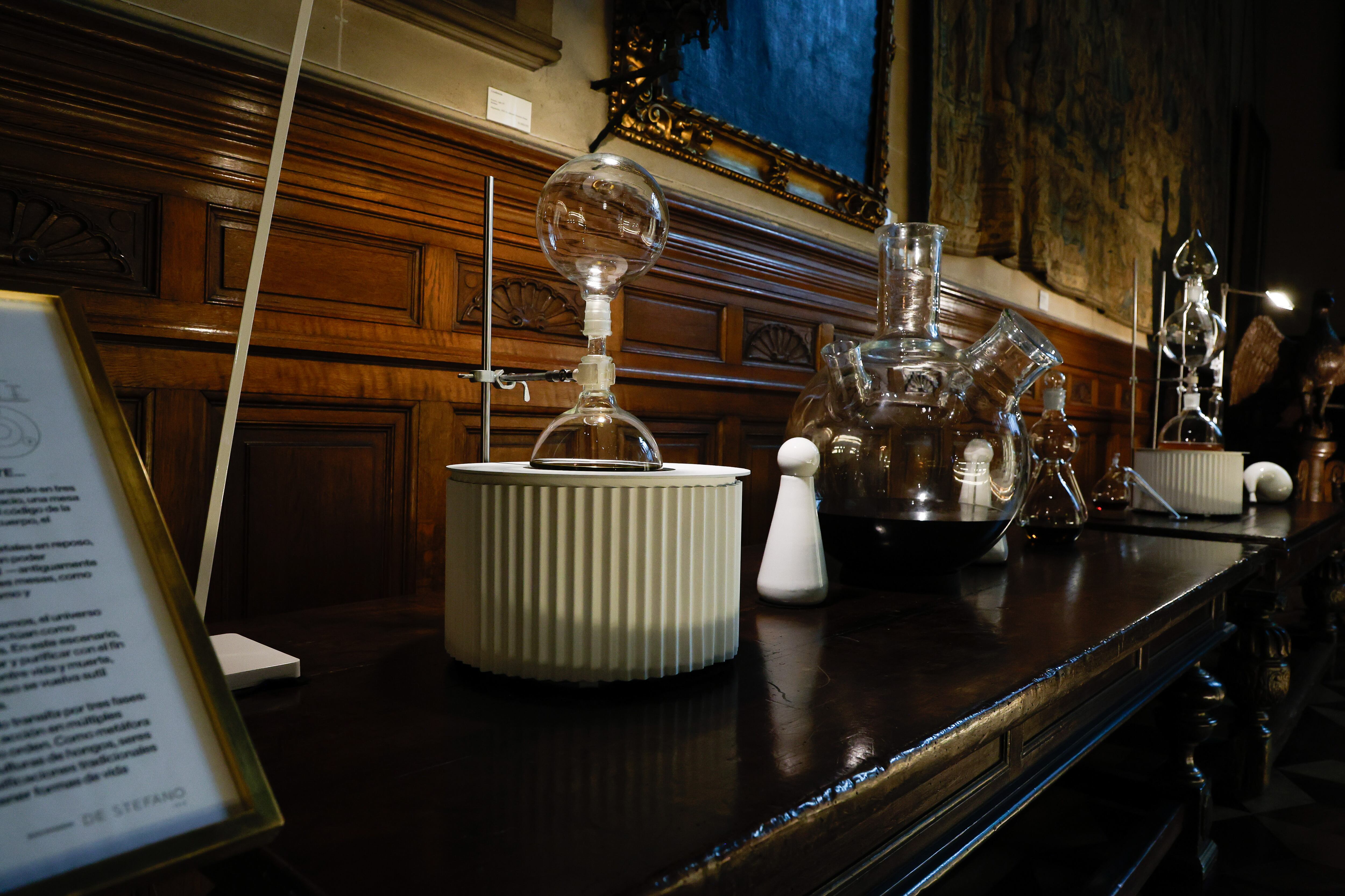 Se complementan con las obras de Leo Batistelli -esculturas en porcelana que representan instrumentos alquímicos inspirados en diseños de Andreas Libavius y hongos de Elba Bairon.