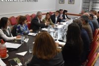 En el Salón Presidente Dr. Raúl Alfonsín, legisladores de las distintas bancadas que integran la Cámara —reunidos en un plenario conjunto de las Comisiones de Asuntos Institucionales y de Legislación General— recibieron a los miembros del Tribunal de Evaluación de los Concursos Públicos para la Designación de Jueces, Defensores y Fiscales del Poder Judicial. El objetivo del encuentro fue avanzar en el tratamiento del proyecto de ley para la conformación del Consejo de la Magistratura y del Jury de Enjuiciamiento.