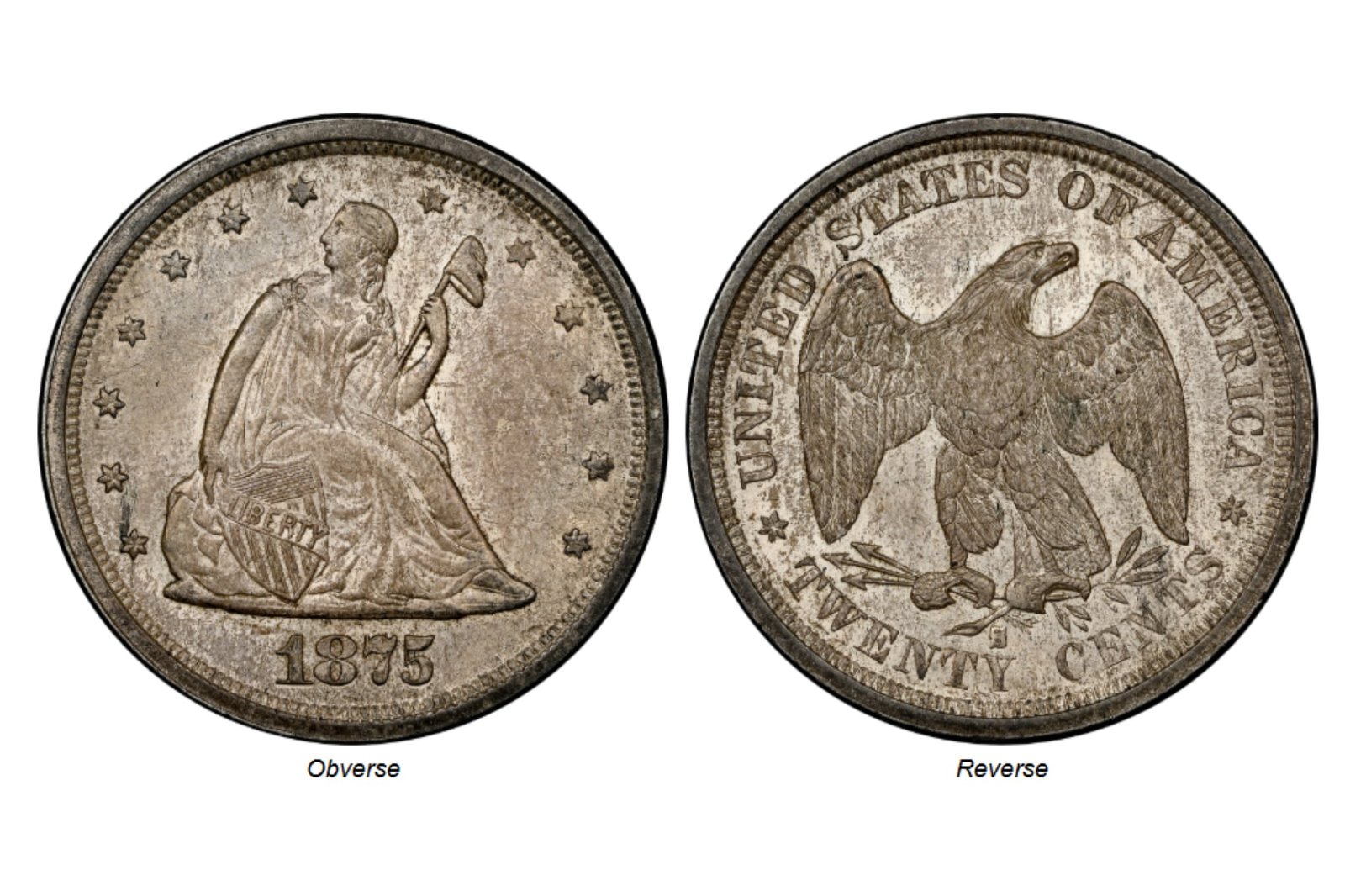 En 1875 había tres Casas de Moneda de Estados Unidos, pero San Francisco fue la que más produjo esta serie de monedas de 20 centavos. Su diseño fue creado por William Barber en 1838 y modificado por Mike Sherman.
