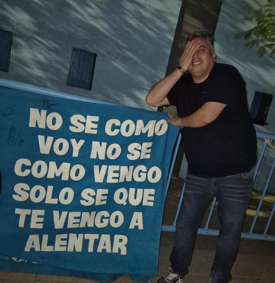 Preparado para pasar la noche, llevó consigo una bandera con una de las frases más emblemáticas de la hinchada: “No sé cómo voy, no sé cómo vengo, solo sé que te vengo a alentar”. Junto a otros seguidores, se instaló con reposeras y todo lo necesario para afrontar la espera.