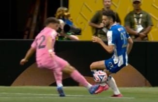 Pero lejos de entusiasmarse con un arranque optimista… el equipo dirigido por Javier Mascherano sufrió un revés muy pronto, a los cinco minutos del partido. ¿Qué ocurrió? Noah Allen levantó la pierna en el área y tocó al portugués João Mario. El árbitro chileno Cristian Garay no cobró nada en una primera instancia, pero tras la revisión del VAR, decidió revertir su fallo y cobrar penal para el conjunto europeo.
