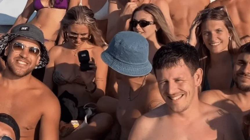 Beltrán y Blondel disfrutaban de unos días de descanso a bordo de un yate, acompañados por amigos y familiares. En un clima distendido, todos posaron para una foto, hasta que el ex Tigre sacó del bolsillo de su malla el anillo de compromiso y rompió la escena preparada.