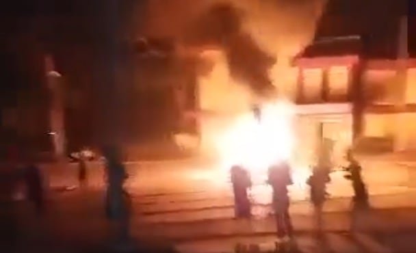 ​Un grupo de gente entró a la fuerza una sede del partido gobernante y quemaron muebles y material de propaganda en una gran hoguera  El Mundo