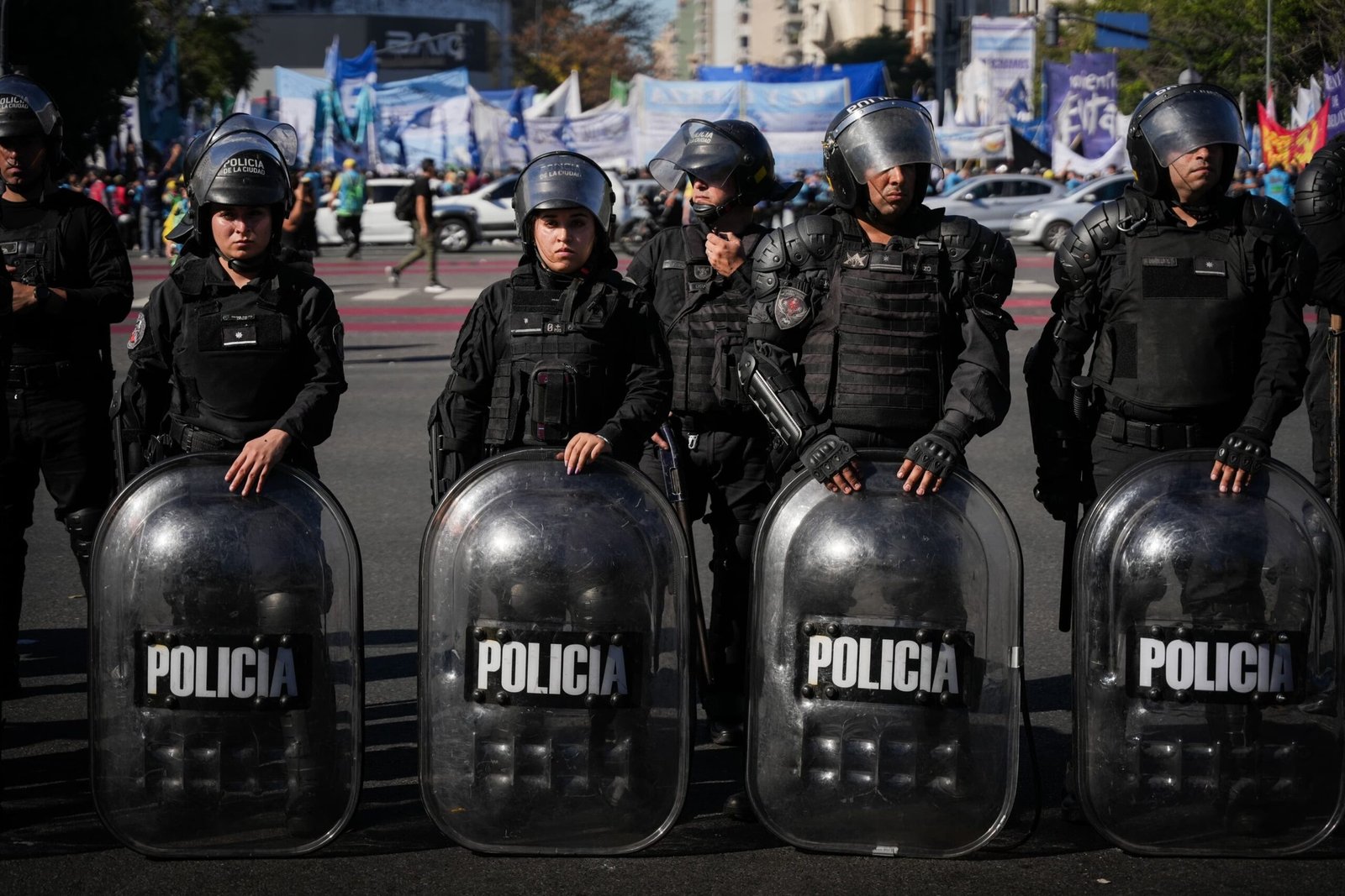 Se espera que finalice frente al monumento Canto al Trabajo, ubicado en avenida Paseo Colón al 800, y que la desconcentración sea por Paseo Colón. A partir del mediodía comenzaron a llegar los primeros manifestantes y se dieron algunos cruces con los efectivos de la policía, que trató de evitar el corte de las calles principales. “Veníamos caminando y se pusieron los policías a empujar. Nos tiraron gas pimienta“, denunció una de las participantes de la movilización en diálogo con TN.