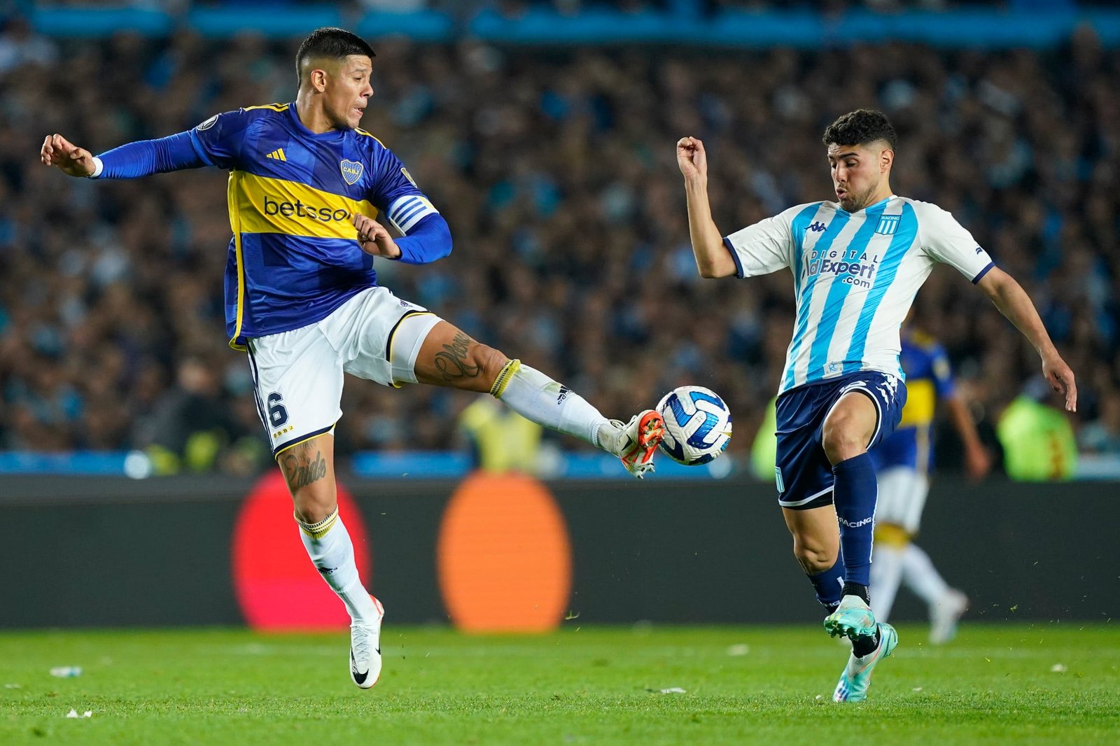 El defensor de Boca le recordó a los hinchas de Racing aquel partido por CONMEBOL #Libertadores.