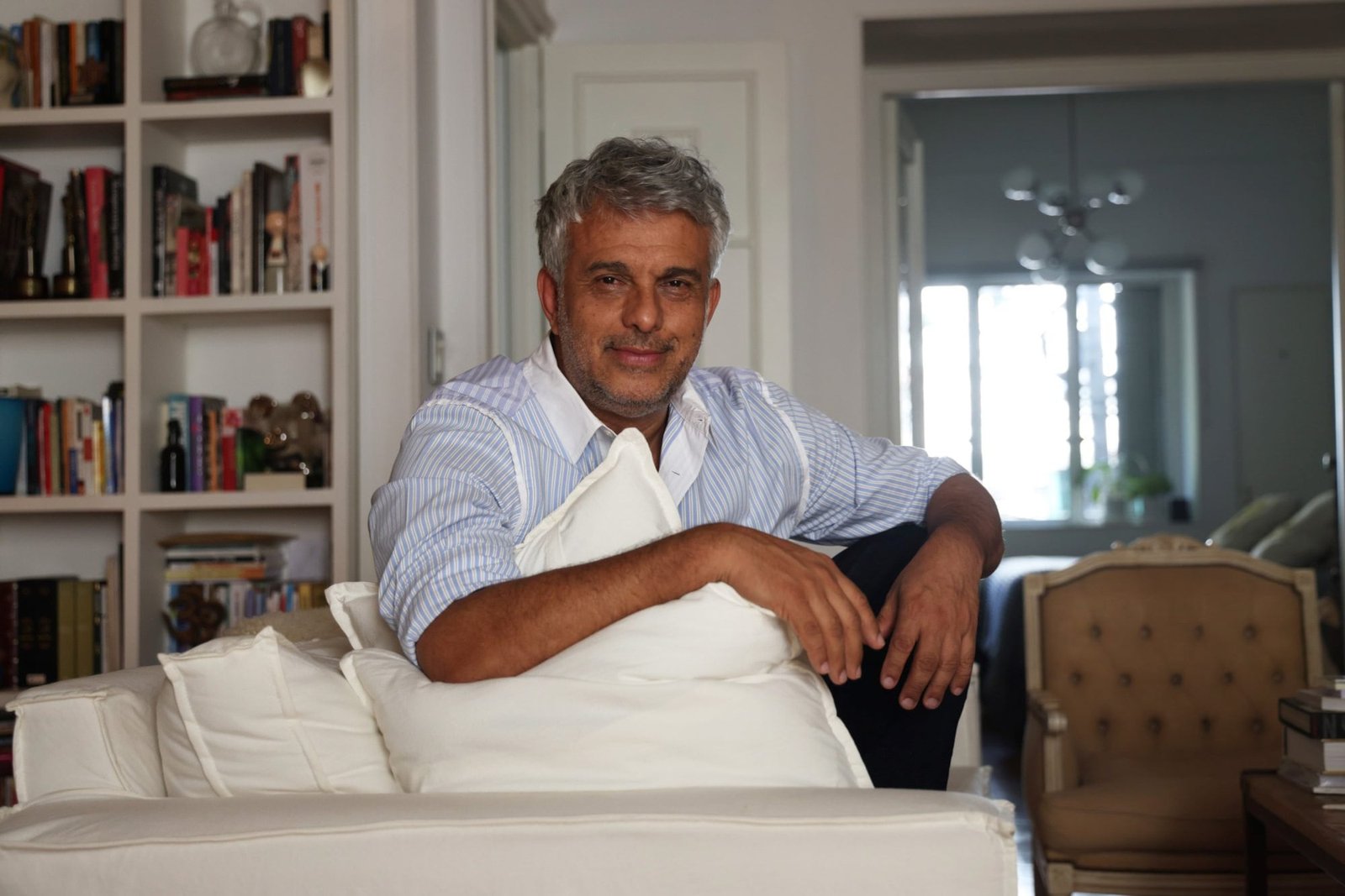 Es media mañana, acaba de regresar del canal, una mesa regada con café, té y jugos y diversos tipos de sándwiches aguardan por la charla. Buen anfitrión. Descalzo, en remera y en posición buda sobre el sillón, rápidamente hace sentir al foráneo como un invitado esperado. Seductor.