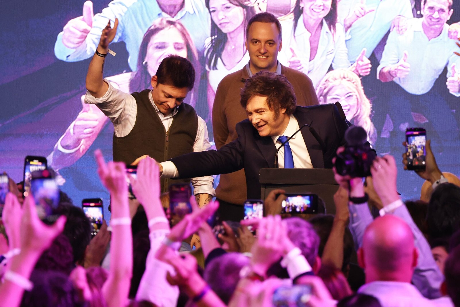 Francos no subió anoche al escenario triunfal, en el búnker del hotel Libertador. Estuvo en la primera fila, mientras Santiago Caputo y el portavoz Manuel Adorni se ubicararon cerca del Presidente. La situación le generó algo de incomodidad, según reconstruyó LA NACION.