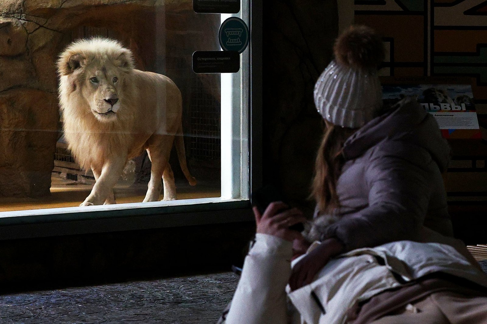​Hay algo extraño en esta foto, y no es tan fácil descubrir exactamente qué. Quizás sea la actitud del león, manso y tranquilo tras el vidrio desde donde observa a los visitantes del Jardín Zoológico y Botánico de la ciudad de Kazan, en Rusia. O tal vez la extrañeza radique en la actitud de las dos personas que a su vez lo miran, distendidas como si estuvieran en el living de la casa (salvo por las ropas de abrigo que sugieren que andan de paseo por lugares no precisamente calefaccionados): recostado sobre el piso el adulto, sentada la niña que -y esto es también es mera suposición- pareciera estar haciendo contacto visual con el felino. Los zoológicos tienen un hálito de tristeza similar al de los viejos circos: tal vez, por más que nadie parezca sufrir aquí, esa impronta también impregne esta foto. Una extrañeza en cierto modo lánguida, contenida, melancólica a su pesar.  Cultura