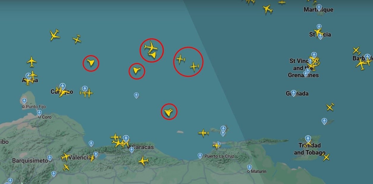 Ocho aviones militares de Estados Unidos realizaron nuevos vuelos cerca de la costa caribeña de Venezuela, en el marco de la operación antidrogas Operation Southern Spear, confirmaron fuentes de defensa y reportes de prensa internacional.