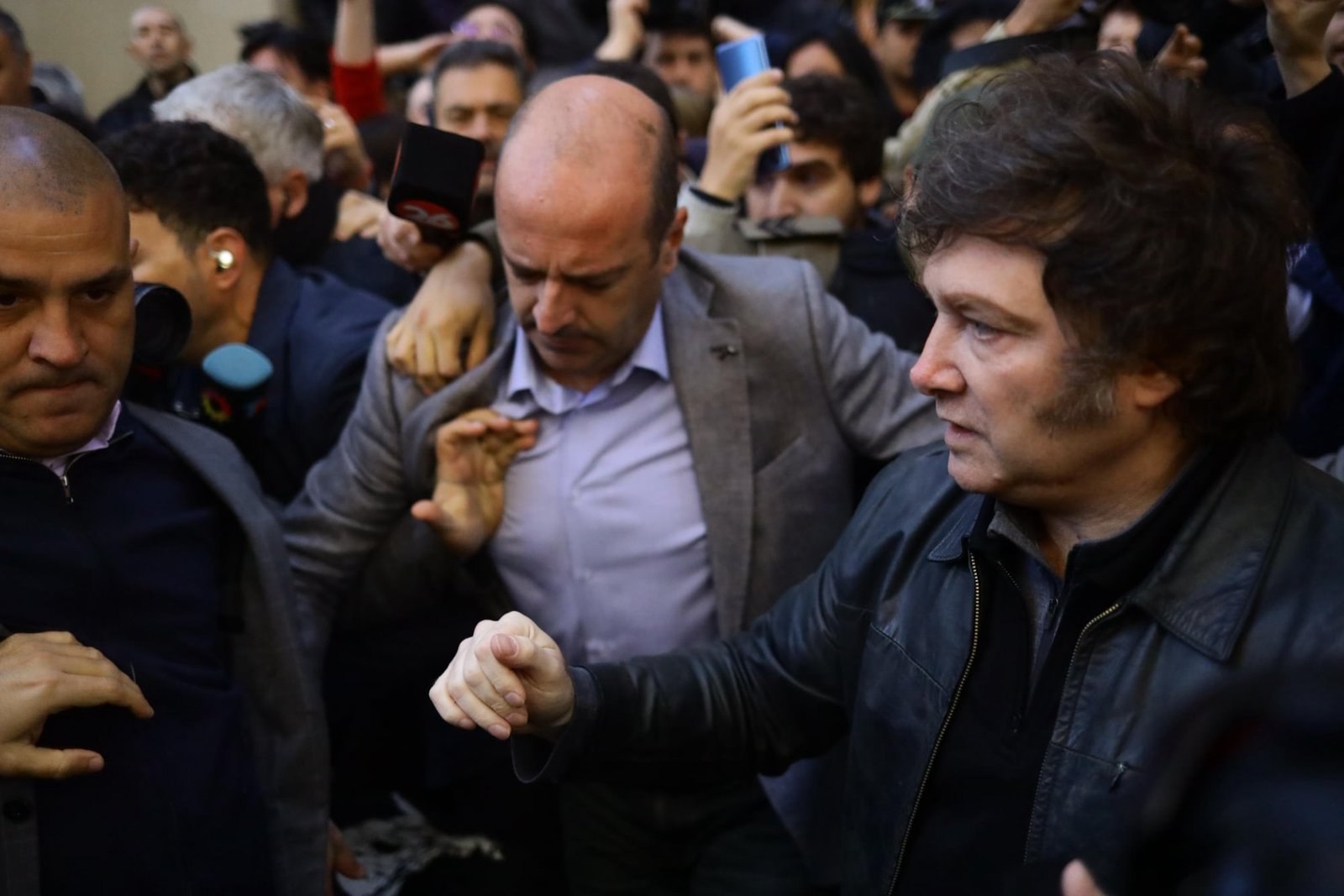 Javier Milei entró rodeado de custodios a la sede de la Universidad Tecnológica Nacional (UTN) en Almagro para emitir su voto. Atacó a Mauricio Macri (“está hecho un llorón”) y se quejó por el enjambre de micrófonos con los que se topó. Pero al llegar a la mesa electoral le esperaba un momento incómodo.