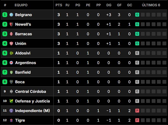 Posiciones del Torneo Clausura 2025: así se jugó la primera fecha