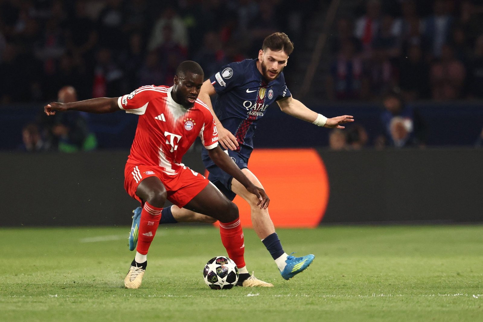 Ambos atacan, pero no generan riesgos en la ofensiva. Los dos se paran bien cuando deben defender y no permiten espacios. En la única acción que Bayern Munich tuvo para contraatacar, Marquinhos derribó a Luis Díaz y se llevó la amarilla.