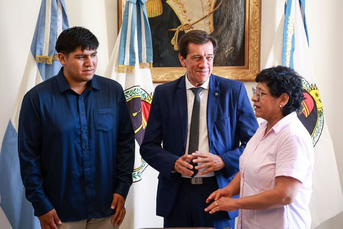 El gobernador de Jujuy mantuvo una charla amena con la visita y se interiorizó sobre los orígenes de Nehuén, su trayectoria estudiantil y los nuevos proyectos educativos universitarios.